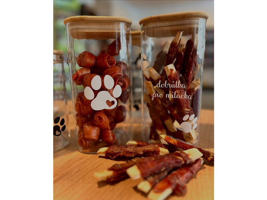 Skleněná dóza s bambusovým víčkem o objemu 1500 ml.