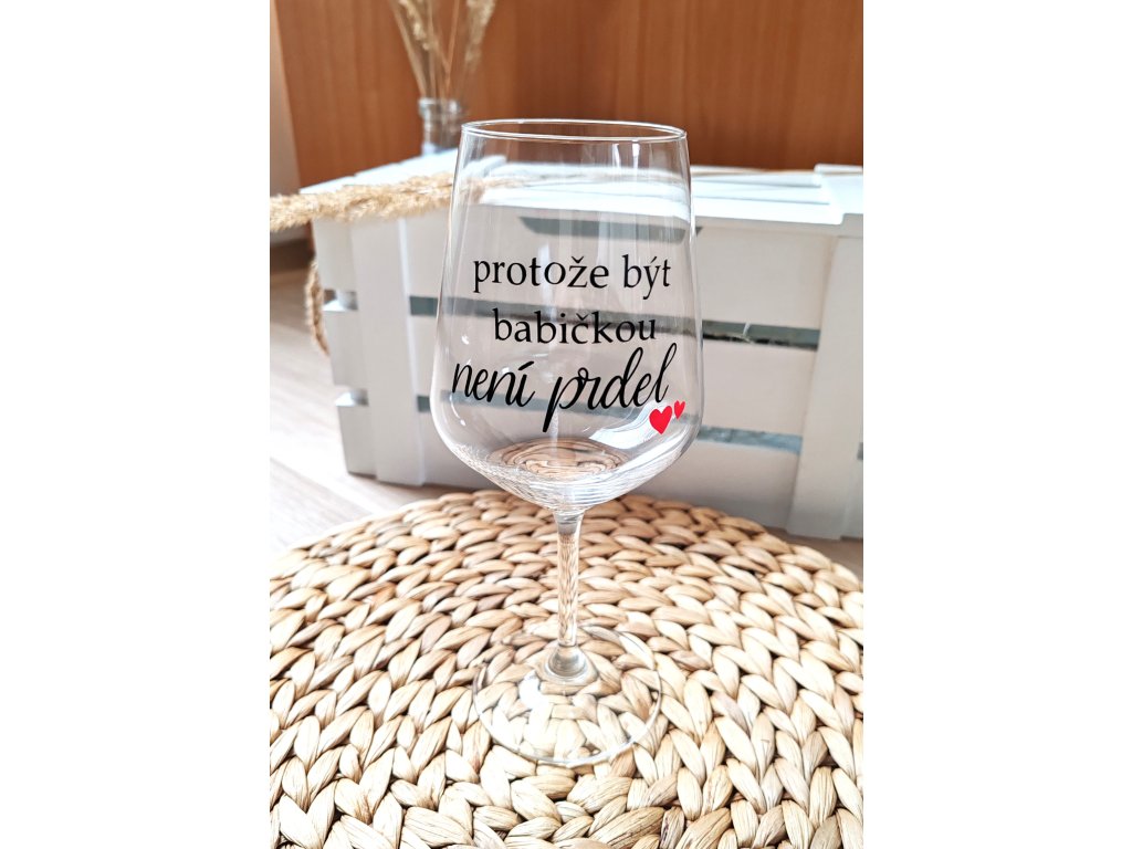 Sklenička na víno s unikátním vinylovým polepem "protože být babičkou není prdel " je originálním dárkem pro babičky a skvělým parťákem pro odměnu po náročném dni s vnoučaty.