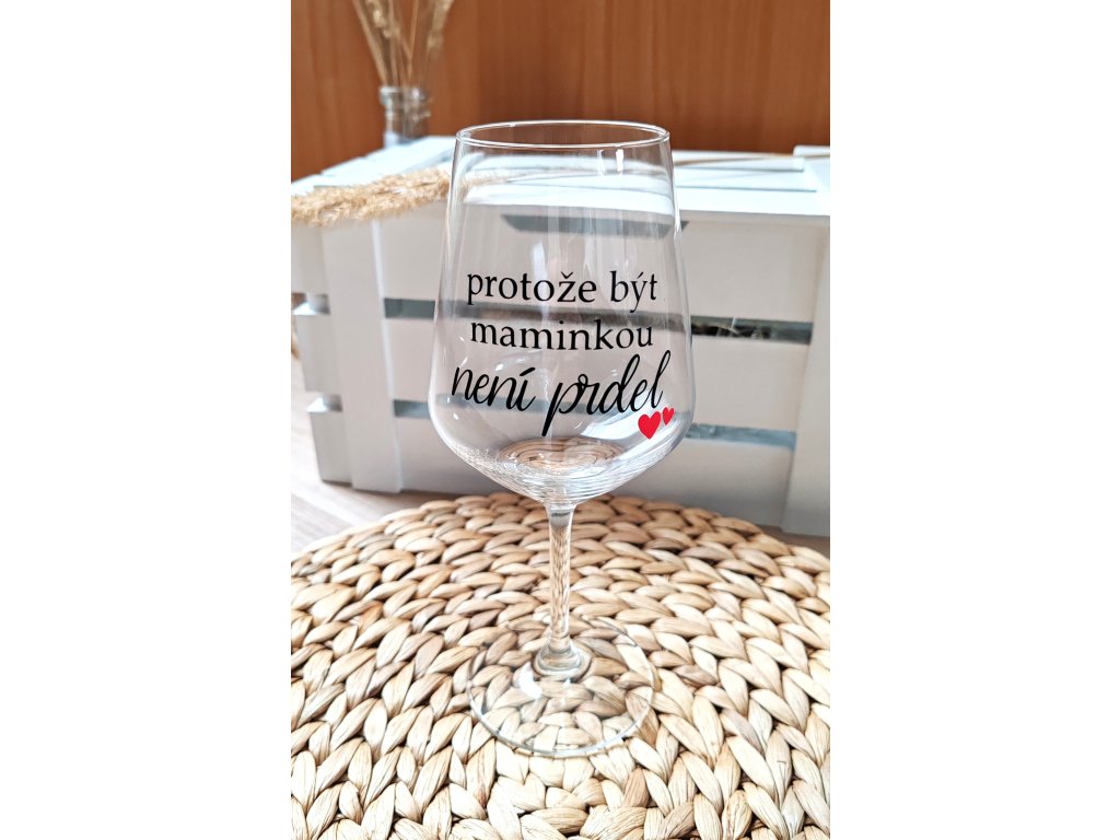 Sklenička na víno s unikátním vinylovým polepem "protože být maminkou není prdel " je originálním dárkem a skvělým parťákem pro odměnu po náročném dni.