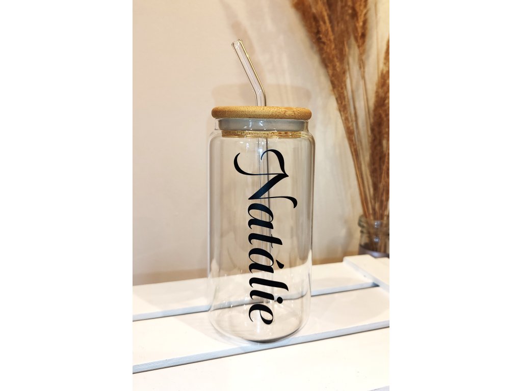 Sklenice s možností personalizovaného nápisu. Jména, přezdívky, čísla...