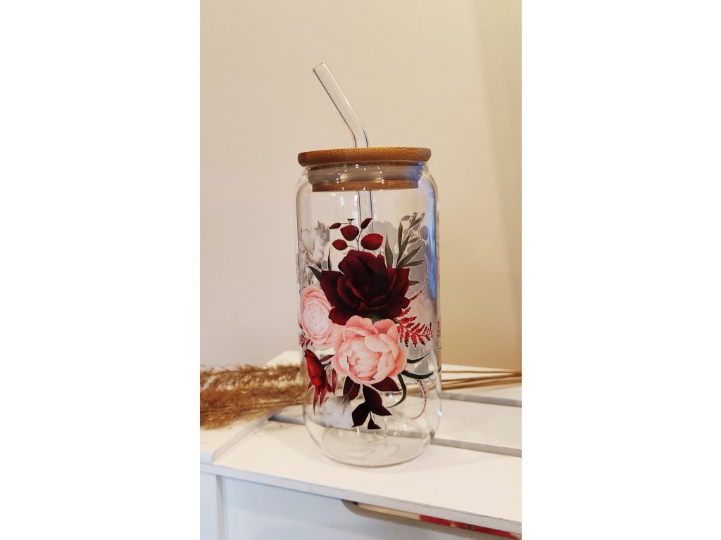 Sklenice s polepem pro maminku včetně bambusového víčka a skleněného brčka.